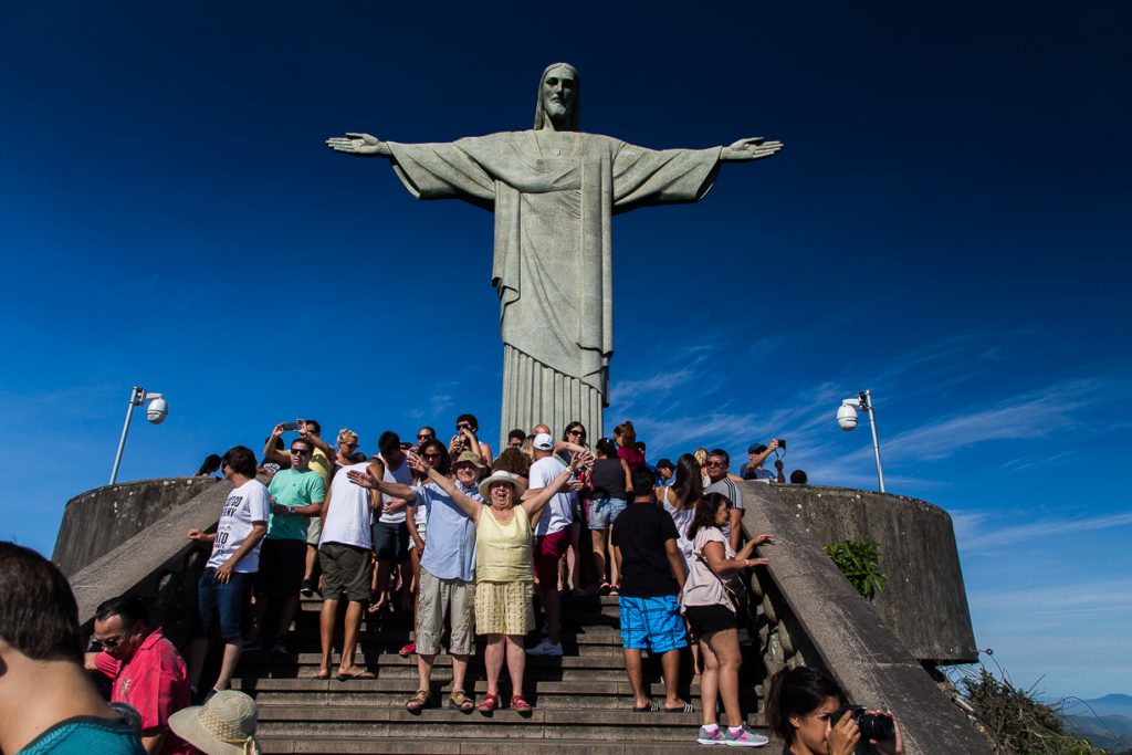 Il y a foule au pied du Christ mais ca en valait la peine! Il y a même des tapis fixes pour s’étendre afin de voir le Christ d’en bas. Ehmm….